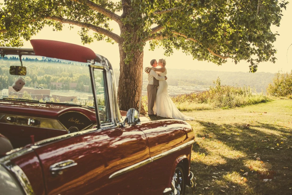 The photo above was taken in vintage-style next to a ravine in Edmonton, Alberta. I really enjoyed shooting this photo. The couple was amazing and wonderfully natural. And how can you resist a vintage Bel Air?
