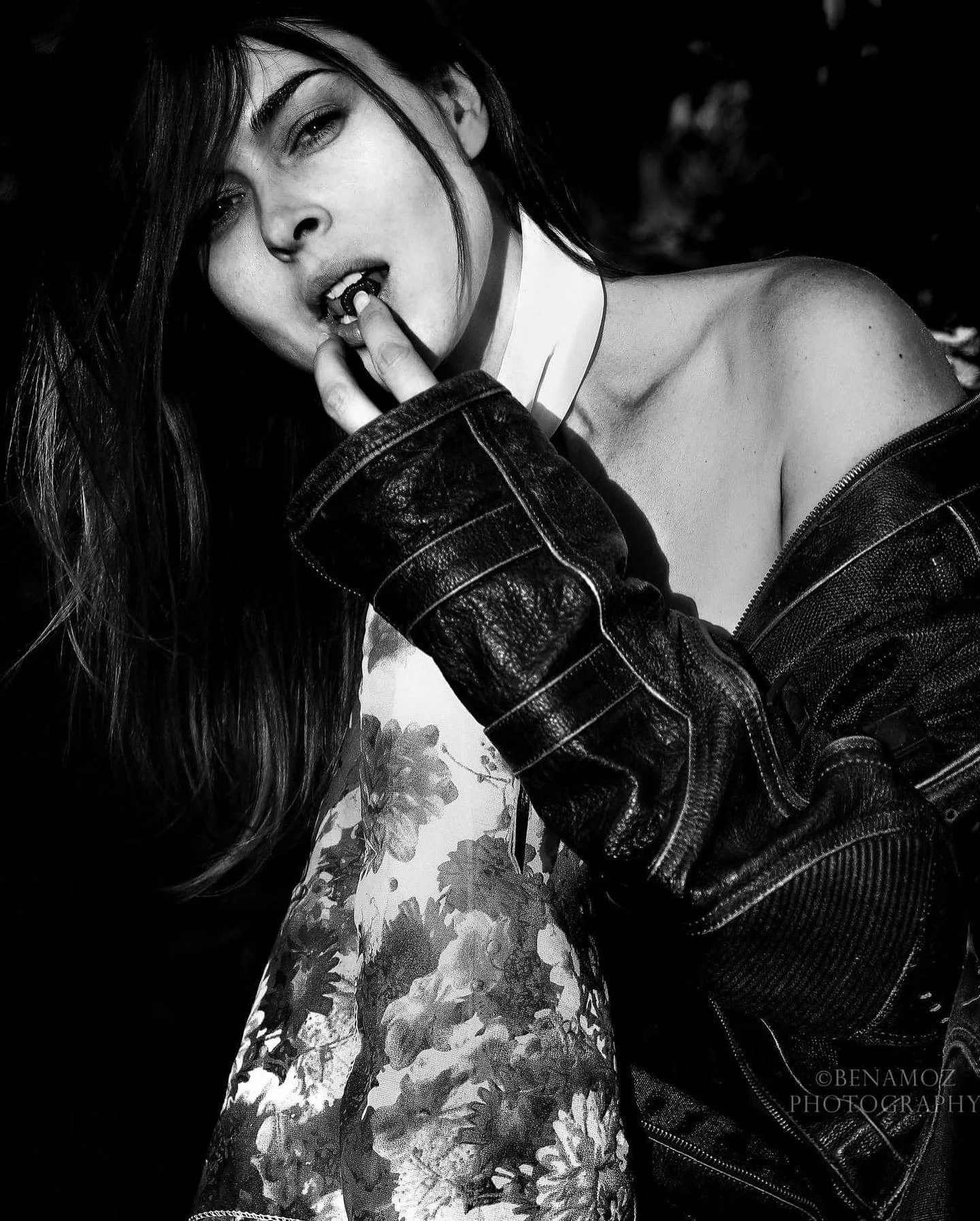 Here it is, the early spring, and my client had a desire to be photographed in contrast; she wished to add a feminine quality to her imagery along with a “leather” look. Her wish was to create B&W photos for her walls.